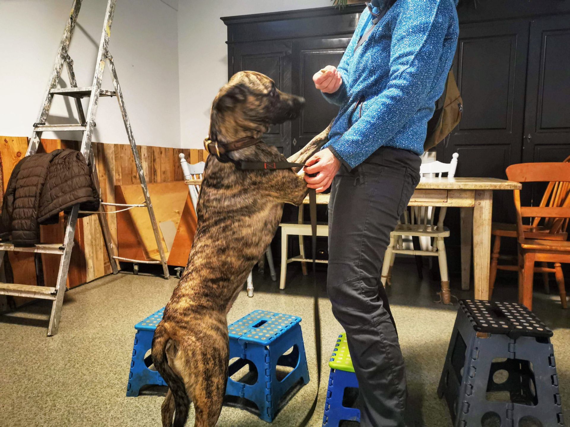 Mijn eigen honden waren middelgroot tot groot, van golden retriever tot labrador tot weimaraner. En sinds 1 jaar laat ik een re-actieve Mechelse herder uit 2 x per week die niet in contact mag komen met andere honden. Dat is intens wandelen maar gaat me goed af en zij is de rest van de dag super relaxed alleen thuis tot het baasje weer komt. En dat was compleet anders toen zij met de uitlaatservice mee ging. Toen was ze gestrest.