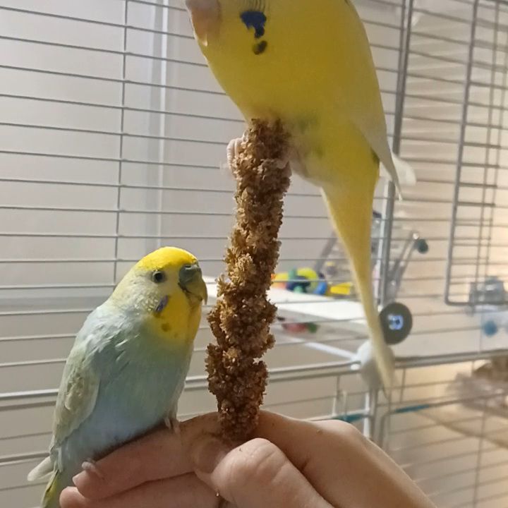 We hebben thuis 2 loslopende konijnen, 4 grasparkieten en 2 valkparkieten. Die vliegen 24/7 los in de huiskamer. In ons vijvertje in de tuin hebben we nog 4 goudvissen.