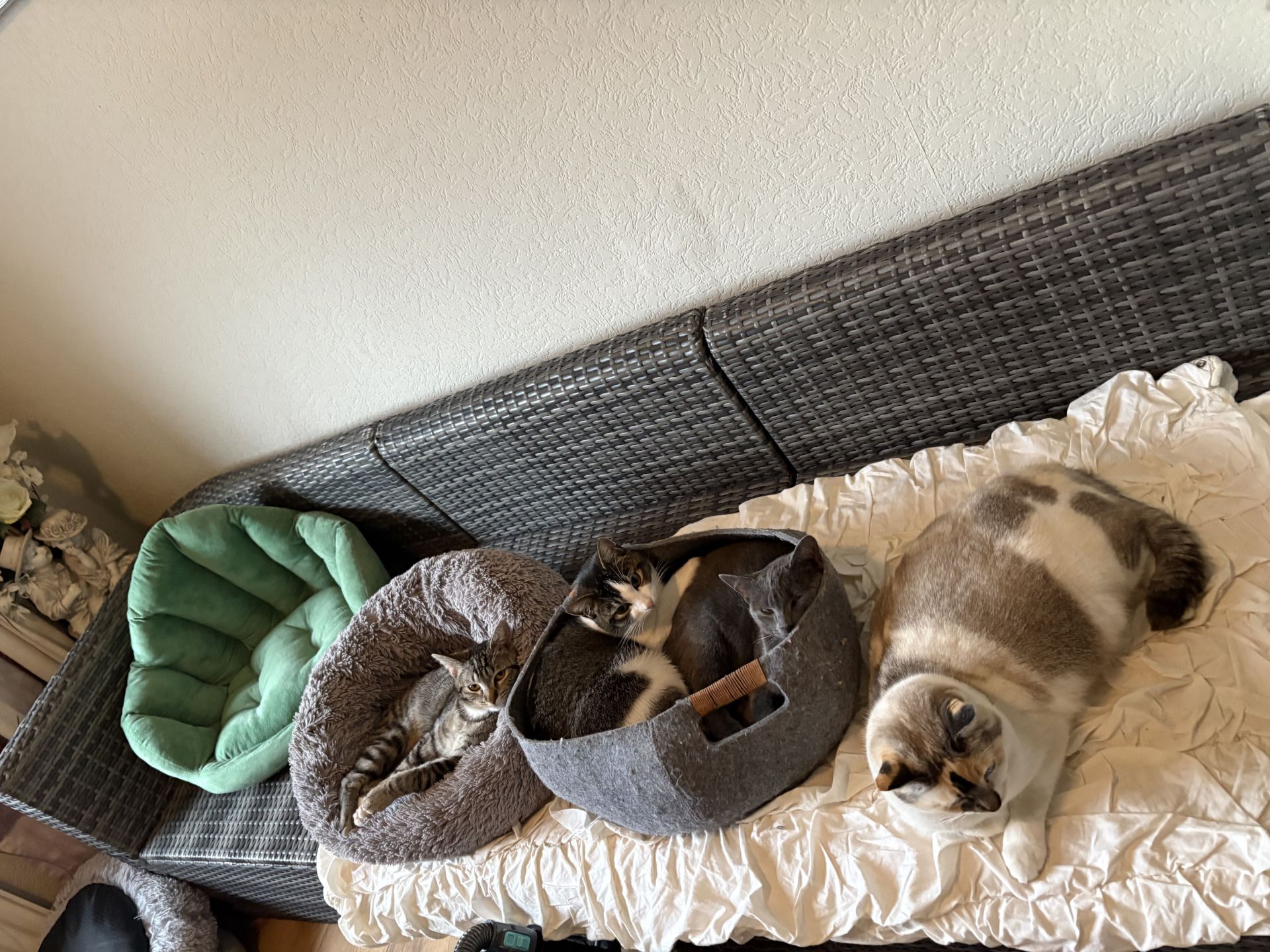 thuis run ik een alleenstaand huishouden met 8 katten en 9 vogels (kromsnavels)