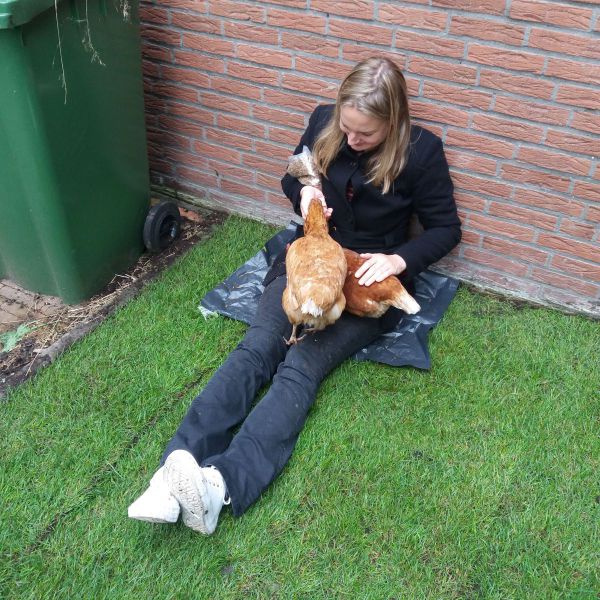 Daarnaast heb ik twee lieve bruine kippen, die gezellig door de tuin scharrelen en er altijd als de kippen bij zijn zodra er wat te eten valt.