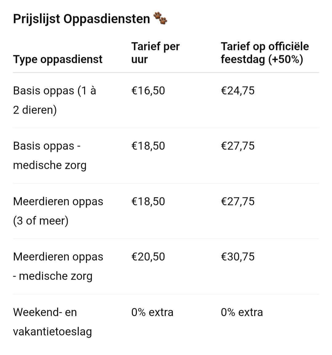 * Meerdieren oppas (3 of meer) €18,50
