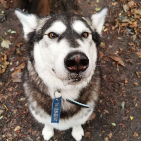 Hij is heel lief, ik heb veel hondentraining met hem gedaan maar het blijft een husky.. dus heeeeeel eigenwijs☺️ hij gaat iedere dag mee met een hondenuitlaatservice dus het is een sociale hond💪