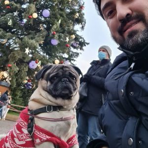 Chico is 6 years old, so not as active as he used to be. He is very friendly, a real buddy and very cute!