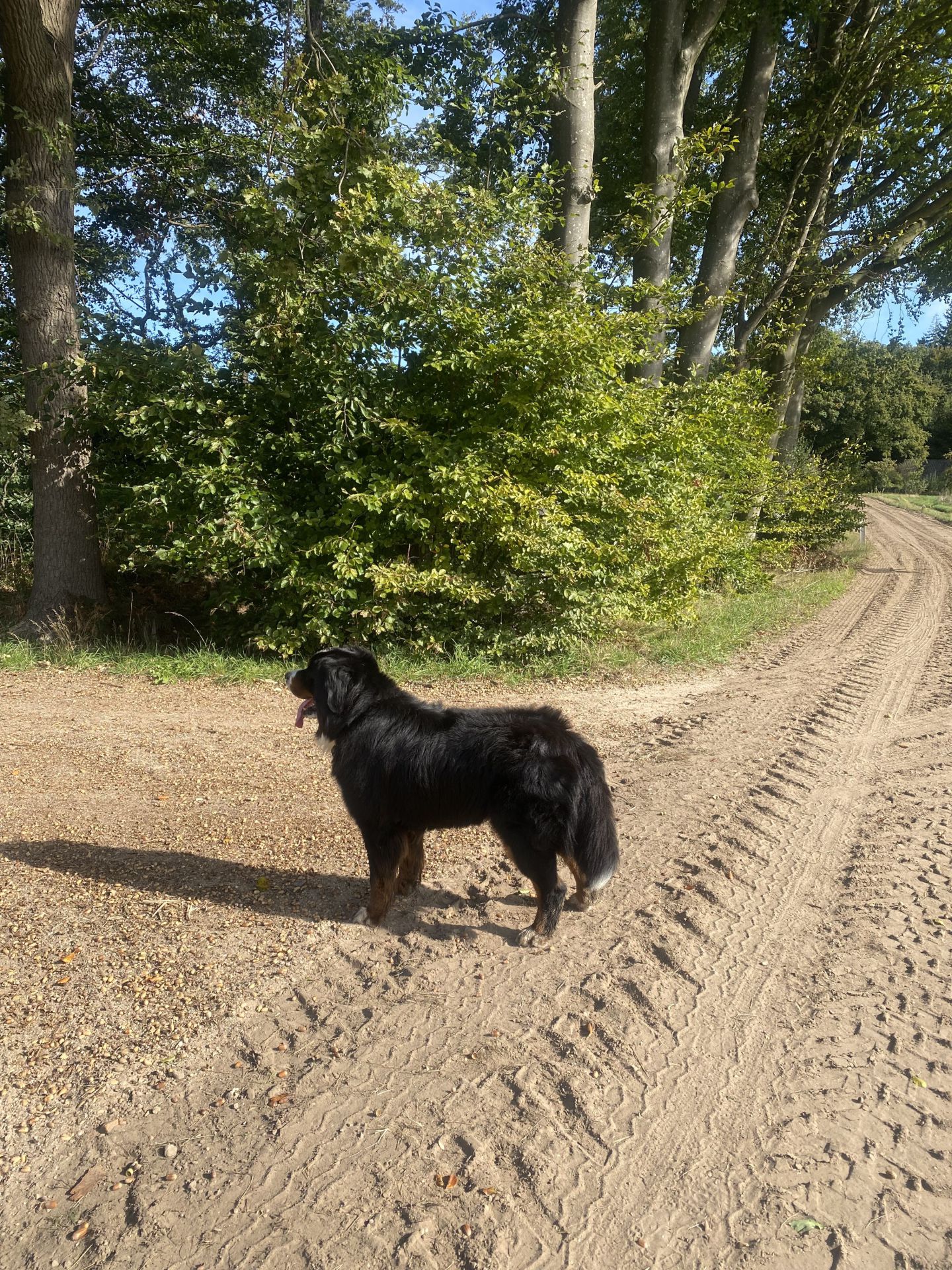 Mojo is veel ruimte & rust gewend en is toch wel wat onvoorzichtig met het verkeer. Alles is leuk en interessant; hij ziet weinig tot geen gevaar. Belangrijk dat je dit weet en hierop kan schakelen en handelen.